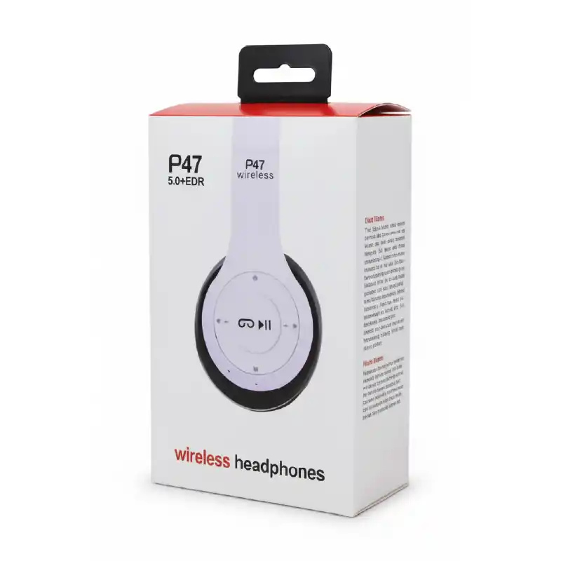 Audífono P47 diadema Bluetooth con diseño moderno y funcional, ideal para disfrutar de un sonido potente sin necesidad de cables. Ofrece conexión estable, controles integrados y un ajuste cómodo que permite usarlo durante largos periodos.