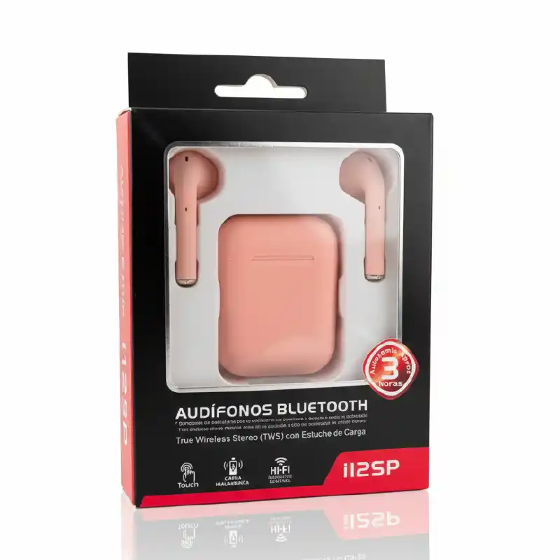 Audífonos Bluetooth i12S en color rosa, diseñados para brindar comodidad y libertad inalámbrica. Ofrecen sonido claro, conexión estable y control táctil para reproducir música o atender llamadas, siendo ideales para el uso diario con carga rápida desde su estuche portátil.