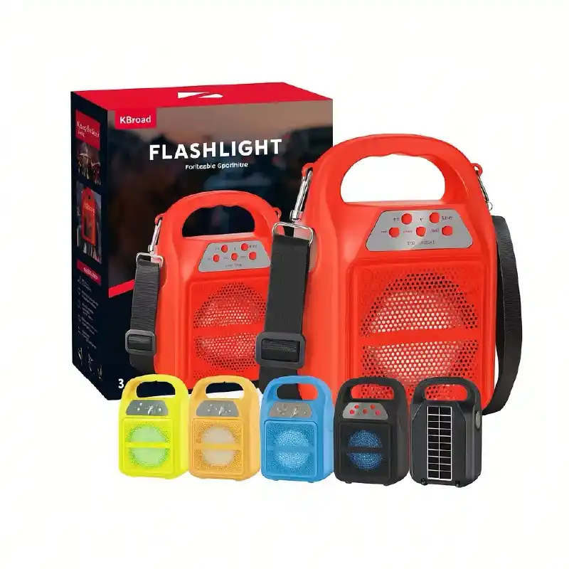 Bocina Bluetooth portátil de 4 pulgadas con panel solar integrado, ideal para disfrutar música en exteriores sin preocuparse por la batería. Ofrece un sonido potente y claro, combinando practicidad, tecnología y diseño funcional para uso diario o actividades al aire libre.