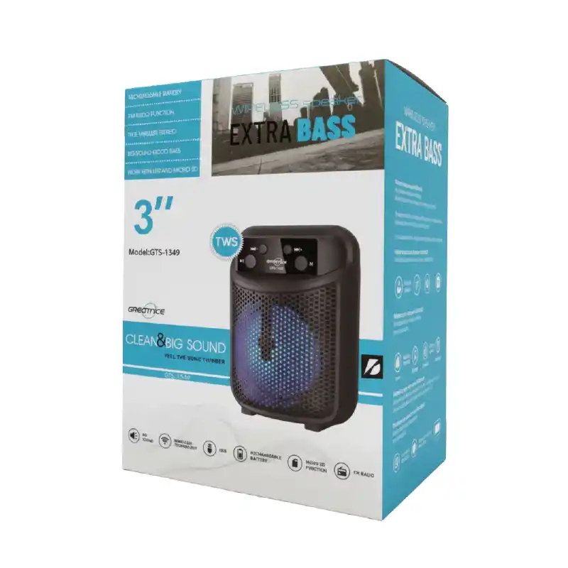 La bocina Bluetooth portátil de 3 pulgadas y 5W ofrece un sonido potente en un tamaño compacto. Ideal para llevar a cualquier lugar, permite disfrutar de tu música favorita con conexión inalámbrica y batería recargable.