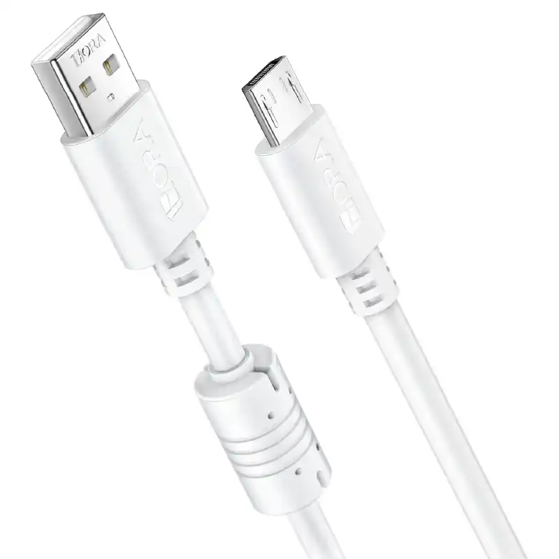 El cable V8/Micro de 1 metro y 2.1A en color blanco ofrece una carga rápida y estable, así como transferencia de datos confiable. Su diseño resistente y compacto lo hace ideal para el uso diario con dispositivos que cuenten con puerto micro USB.