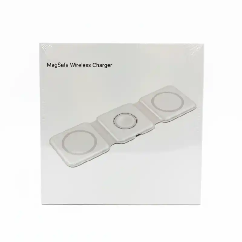 El cargador inalámbrico 3 en 1 con tecnología MagSafe es la solución ideal para mantener tus dispositivos organizados y listos para usar. Diseñado para cargar al mismo tiempo tu smartphone, reloj inteligente y audífonos, este cargador ofrece una experiencia práctica y eficiente. Su potente alineación magnética asegura una conexión perfecta para carga rápida y sin interrupciones. Con un diseño compacto y moderno, se adapta bien a cualquier espacio. Equipado con protección avanzada contra sobrecalentamiento y sobrecarga, este cargador 3 en 1 proporciona una carga segura y confiable para tus dispositivos.