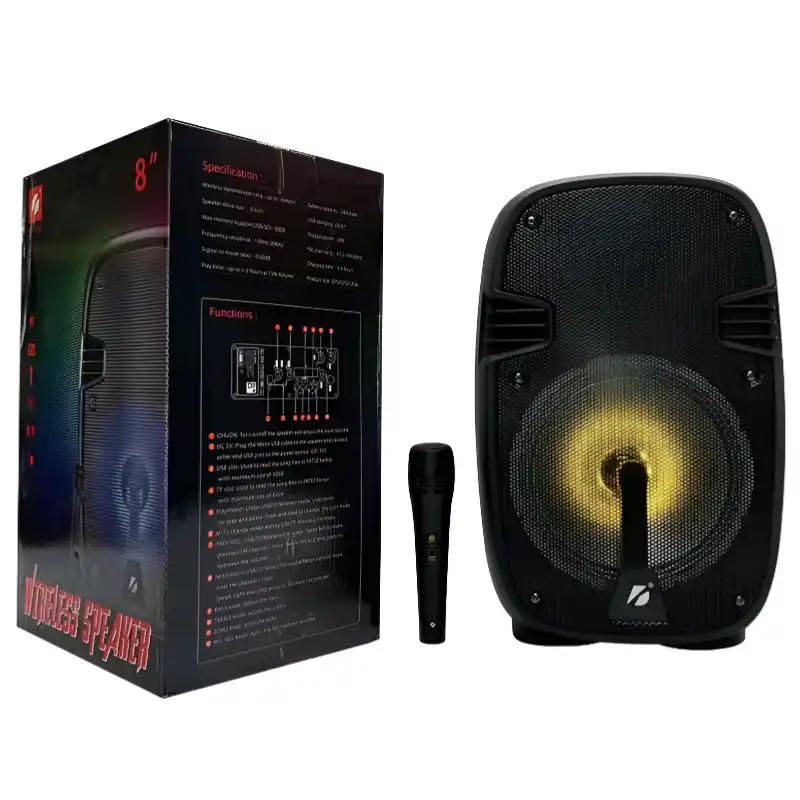 La Bocina Bluetooth de 8 pulgadas de 10W con micrófono integrado, está diseñada para ofrecer sonido potente y claro en cualquier espacio. Permite reproducir música de forma inalámbrica, siendo ideal para reuniones, fiestas o uso personal.