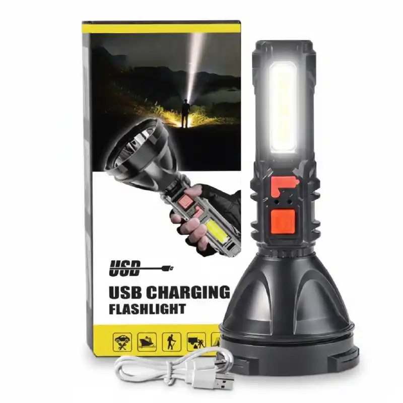 La lámpara de mano LED recargable proporciona iluminación potente y confiable sin depender de pilas desechables. Su batería recargable permite un uso prolongado, y su diseño compacto y ergonómico facilita transportarla y utilizarla en interiores, exteriores o situaciones de emergencia.