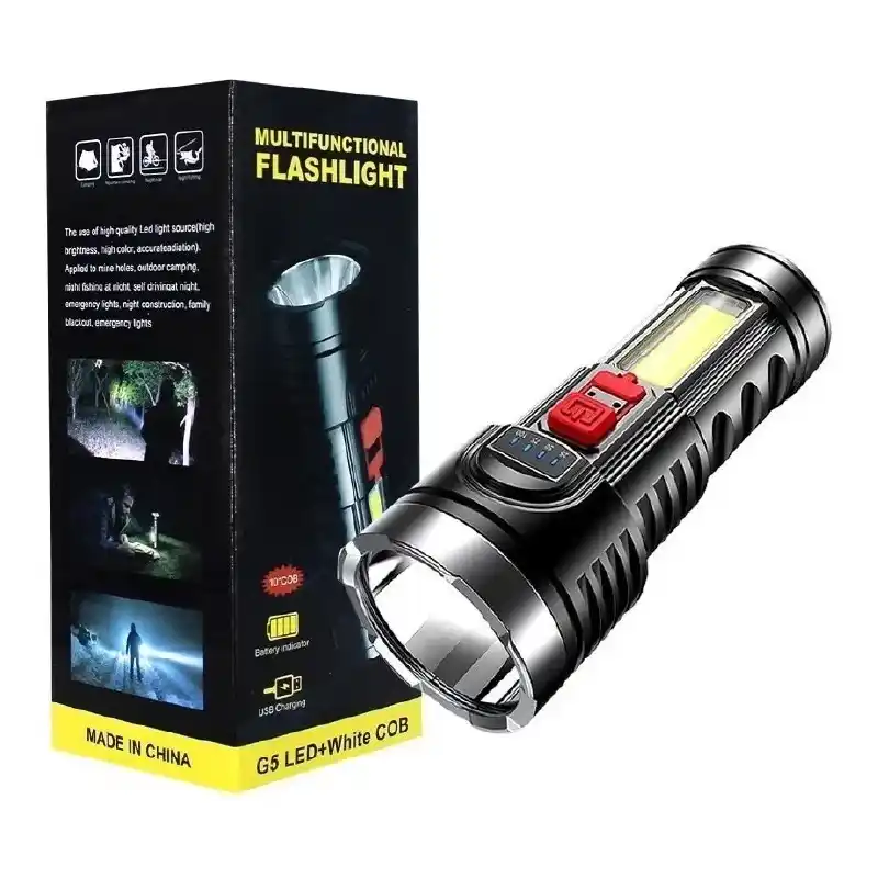 La lámpara de mano recargable proporciona iluminación potente y confiable sin depender de pilas desechables. Su batería recargable permite un uso prolongado, y su diseño compacto y ergonómico facilita transportarla y utilizarla en interiores, exteriores o situaciones de emergencia.