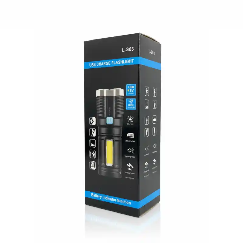 La lámpara de mano recargable proporciona iluminación potente y confiable sin depender de pilas desechables. Su batería recargable permite un uso prolongado, y su diseño compacto y ergonómico facilita transportarla y utilizarla en interiores, exteriores o situaciones de emergencia.