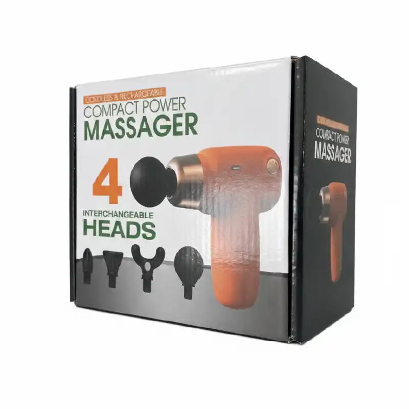 La pistola masajeadora es un dispositivo de terapia de percusión diseñado para la recuperación muscular profunda y el alivio del dolor. Este aparato de mano funciona aplicando vibraciones rápidas y concentradas en los tejidos musculares, lo que ayuda a mejorar la circulación sanguínea, liberar nudos y reducir la rigidez. El paquete incluye cuatro cabezales intercambiables que permiten al usuario personalizar el masaje para diferentes grupos musculares o necesidades específicas. Es una herramienta popular entre atletas y personas que buscan alivio terapéutico en casa.