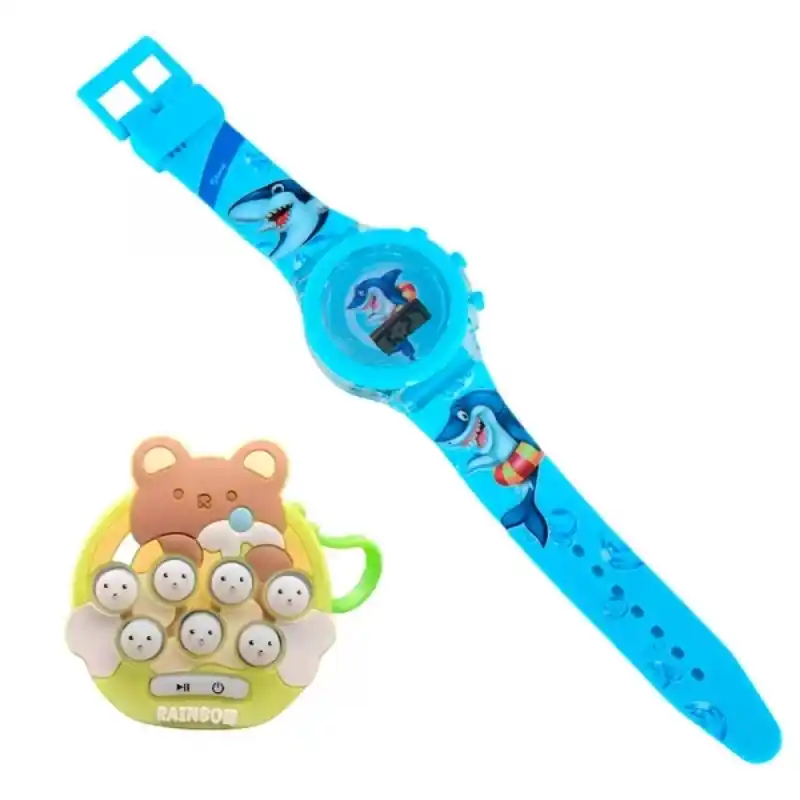 Reloj infantil con diseño colorido acompañado de un llavero Pop It, perfecto para los más pequeños. Combina funcionalidad y diversión, ideal para enseñarles a leer la hora mientras disfrutan de un accesorio entretenido y moderno.