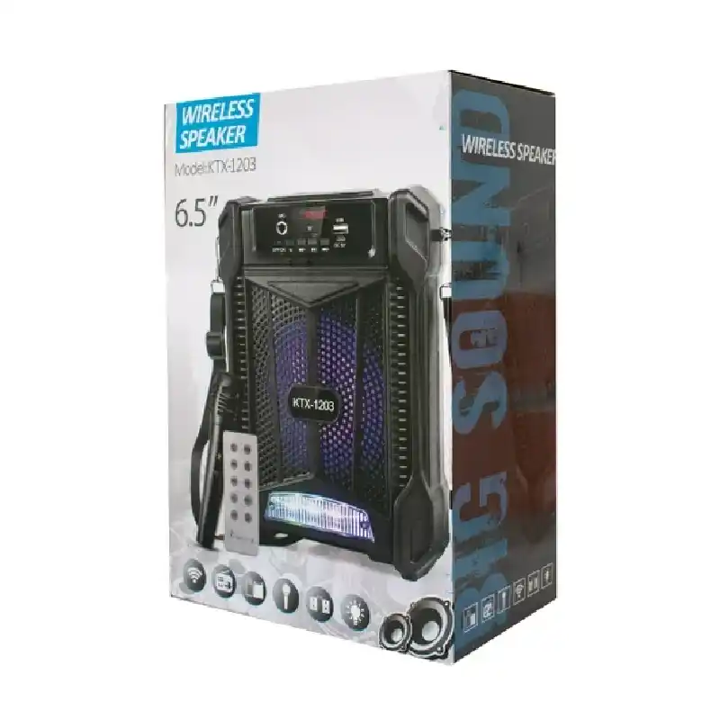 Bocina Bluetooth de 8 pulgadas y 10W con micrófono integrado, diseñada para ofrecer sonido claro y potente en un tamaño compacto. Permite reproducir música de forma inalámbrica, siendo ideal para uso personal, reuniones o actividades al aire libre.
