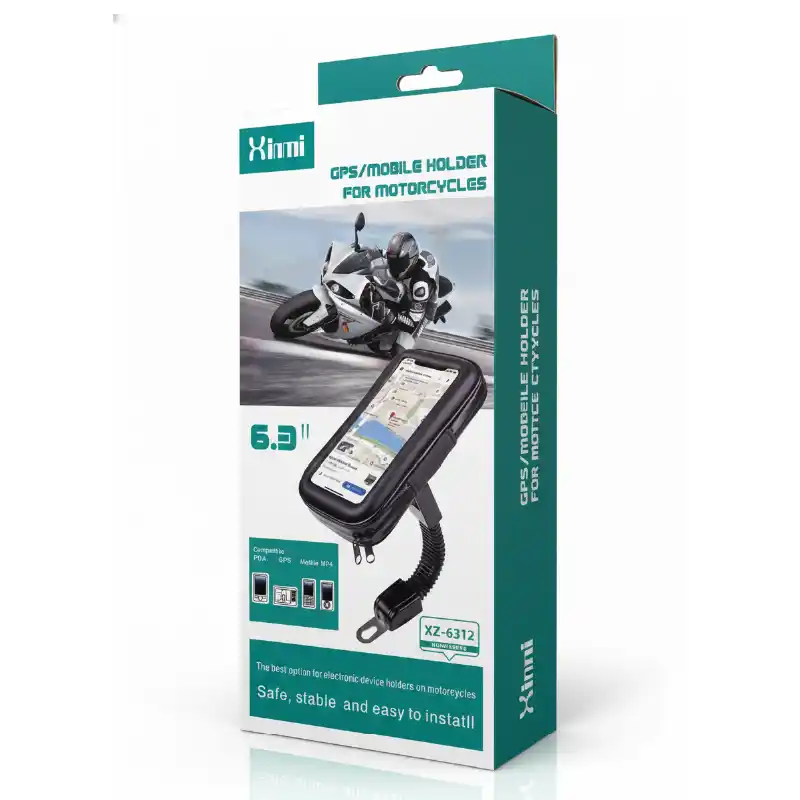 Viaja seguro y mantente conectado con este soporte para celular diseñado específicamente para motocicletas. Cuenta con un sistema de sujeción firme al manillar y un estuche protector impermeable que resguarda tu teléfono de la lluvia y el polvo. Permite rotar el ángulo para una visualización óptima del GPS o las notificaciones. Es ideal para repartidores, ciclistas o viajeros que necesitan tener su celular a la vista y protegido durante el trayecto.